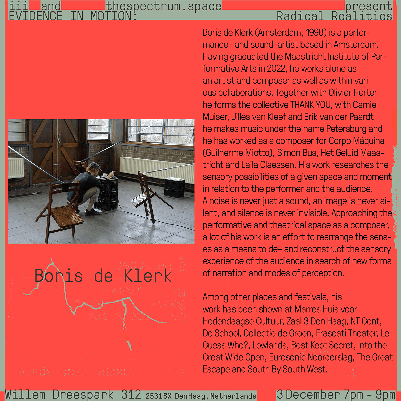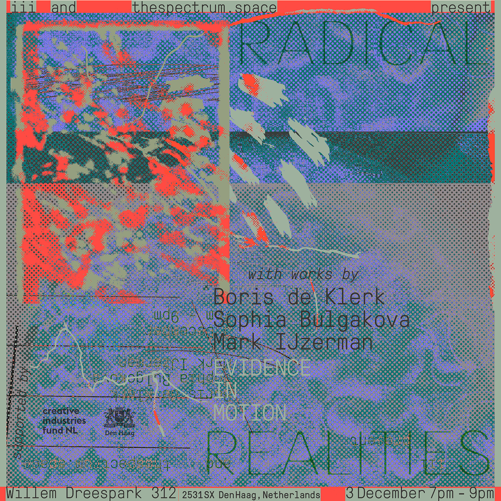 Identity for an event organized by iii and thespectrum.space, two artist-run spaces based in the Hague. The commission included making social media assets for the event that happened at iii in 2022.