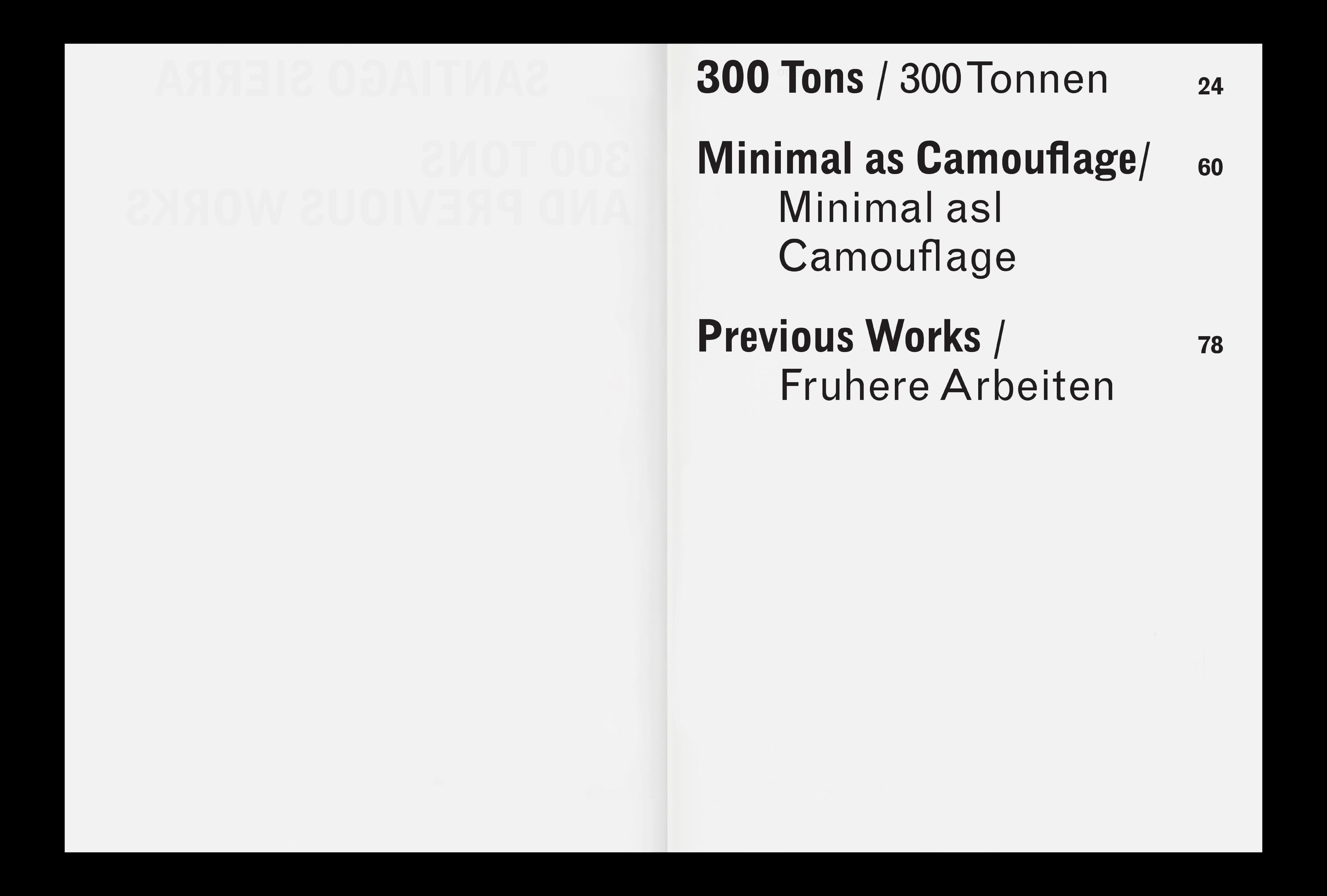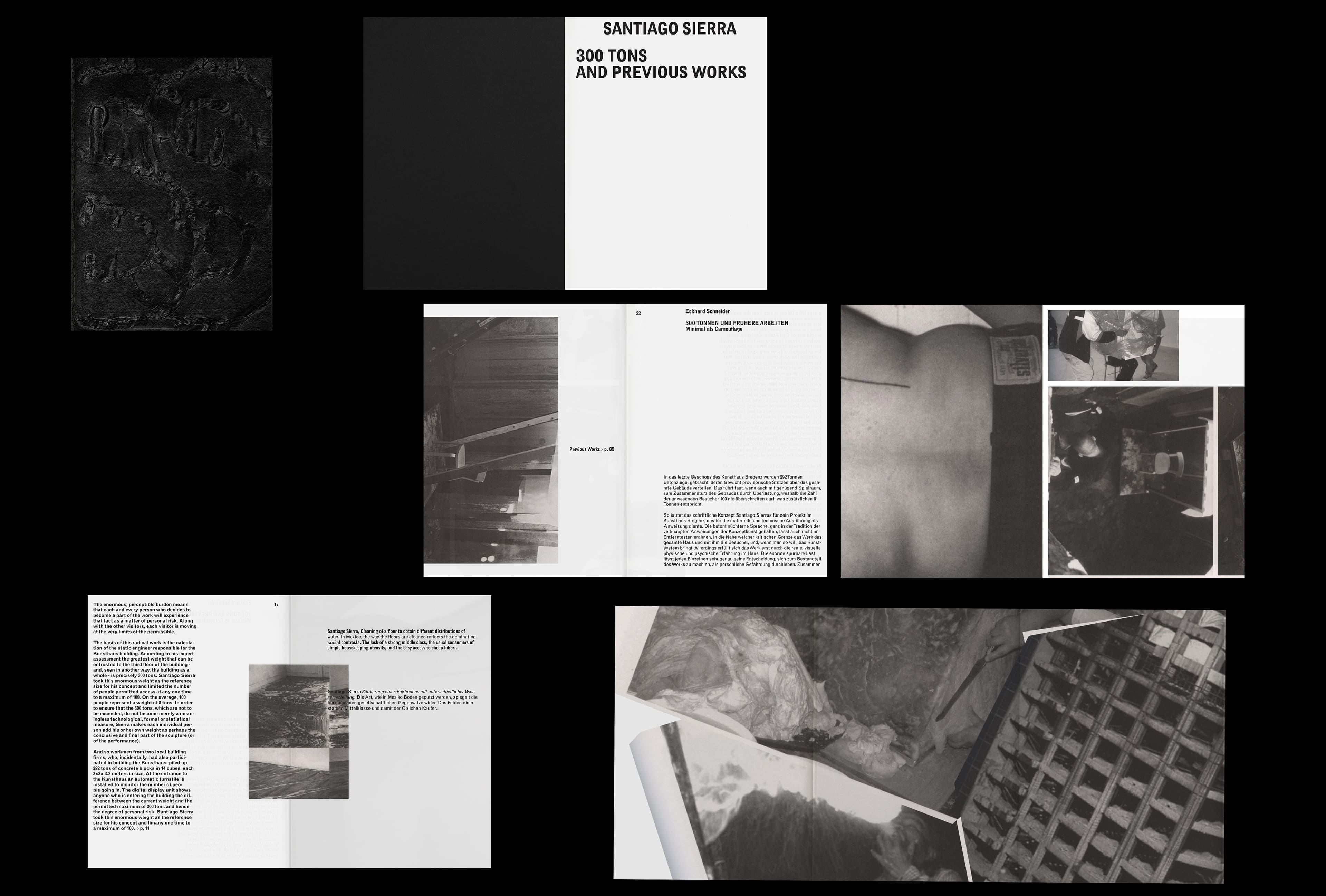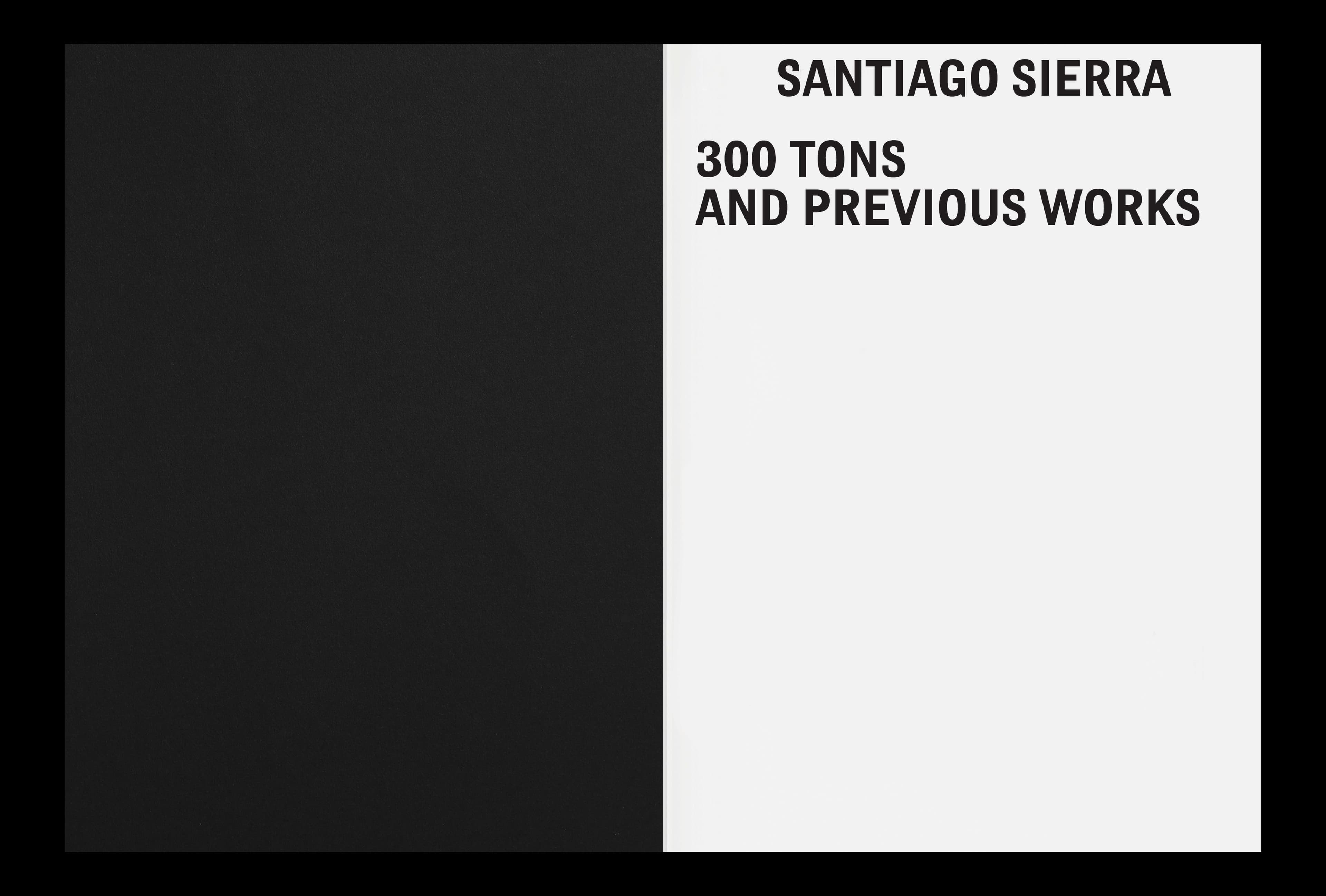 Redesign proposal for the book "Santiago Sierra: 300 Tons and Previous Works". This proposal features fold-out pages, added archival materials, and an embossed black leather cover.