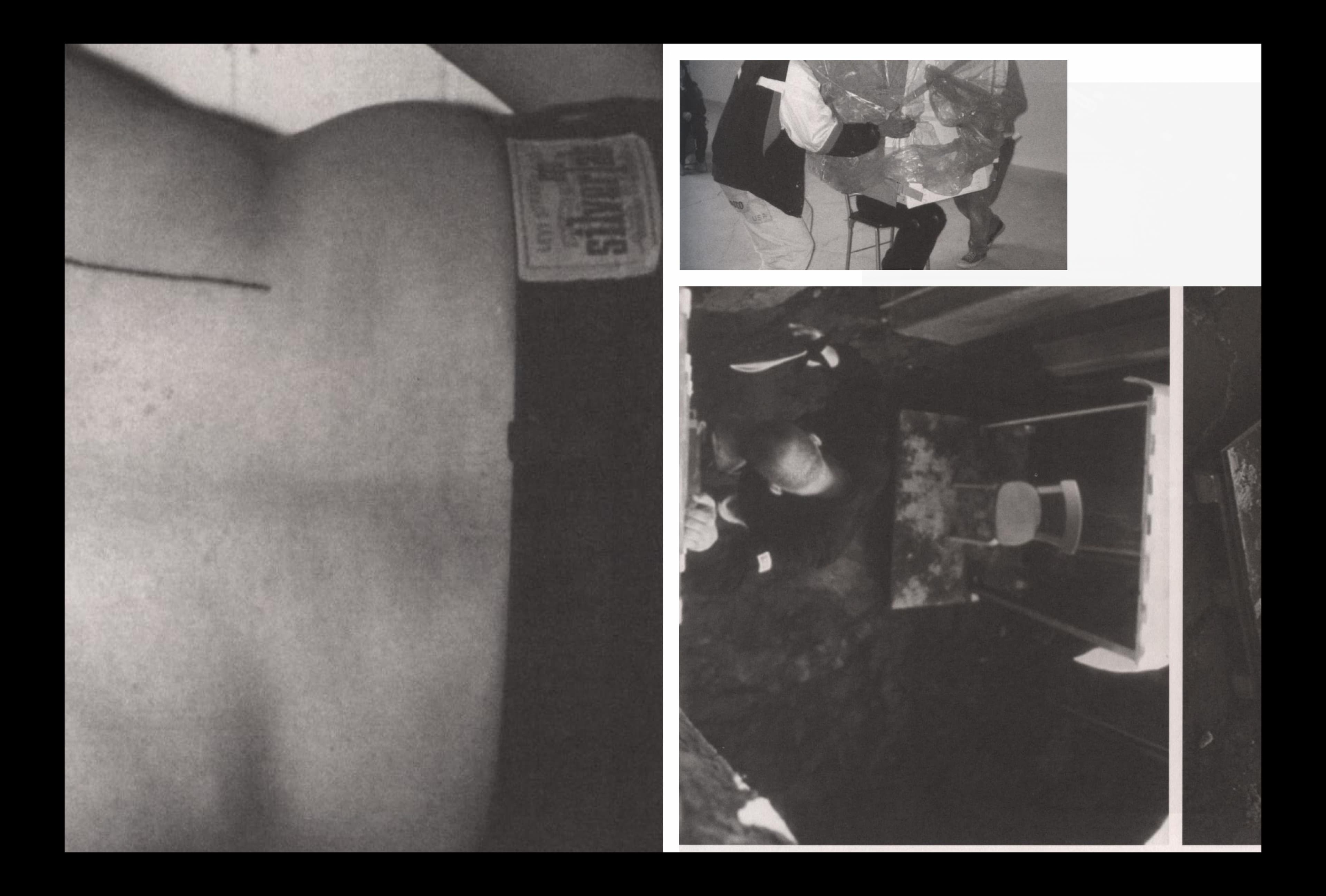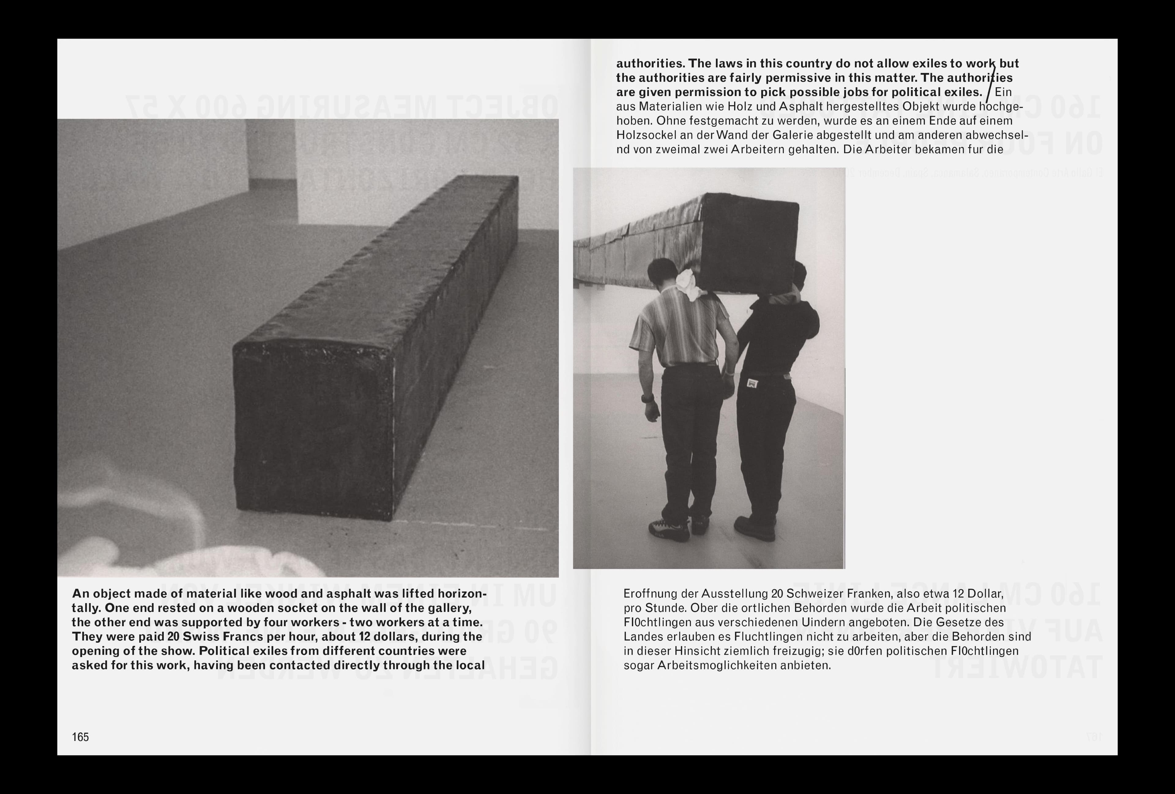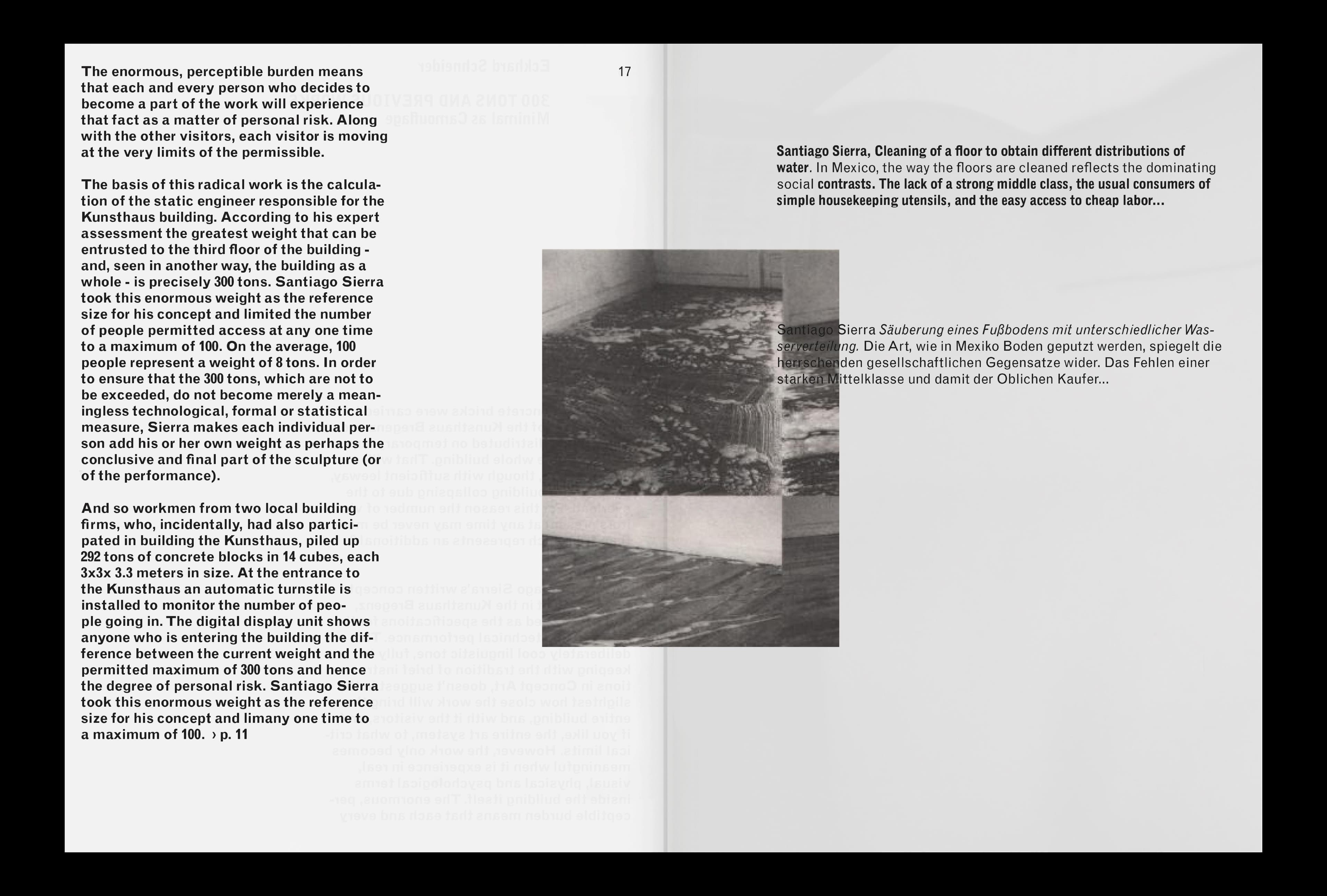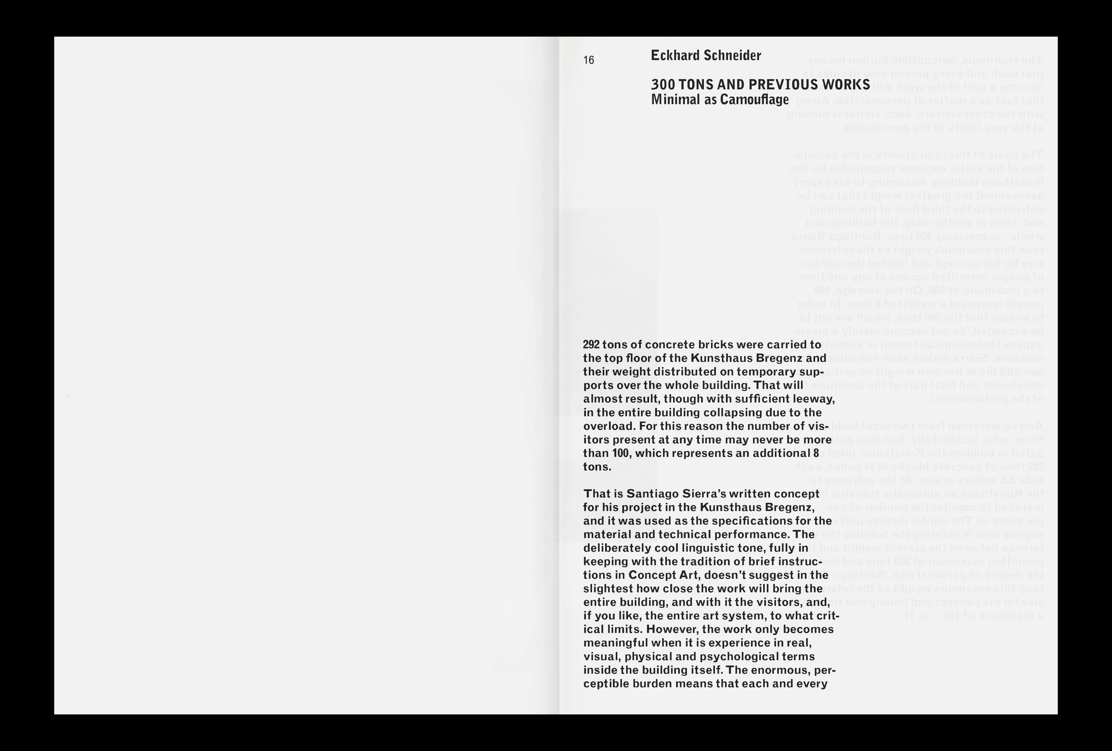 Redesign proposal for the book "Santiago Sierra: 300 Tons and Previous Works". This proposal features fold-out pages, added archival materials, and an embossed black leather cover.